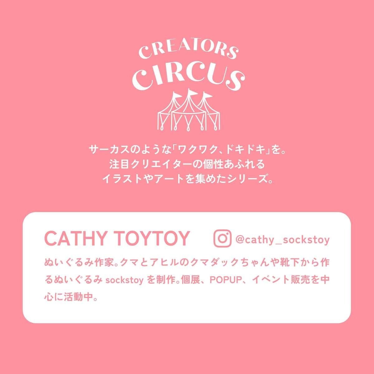 CREATORS CIRCUS 透明シール / CATHY TOYTOY サーカスのような『ワクワク、ドキドキ』を。 たくさんの注目クリエイターが大集合したシリーズの中からCATHY TOYTOYのシートシールをセレクトしました! ■ サイズ:W90×H195×D1mm ■生産地:日本 ■素材:透明PET
