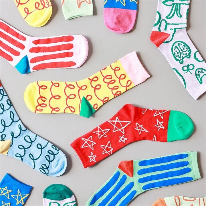 socks Code / Goma 料理創作ユニット「Goma」が描く、 ポップながら手描きの温かさが伝わるデザインをモチーフにしたソックス。 今回も独特の色使いとデザインが組み合わさり、カラフルで楽しい仕上がりとなりました♩ 《 size 》レディースフリー 《 color 》Yellow 《 material 》 表糸:綿100% 裏糸:ポリエステル92% ポリウレタン8%
